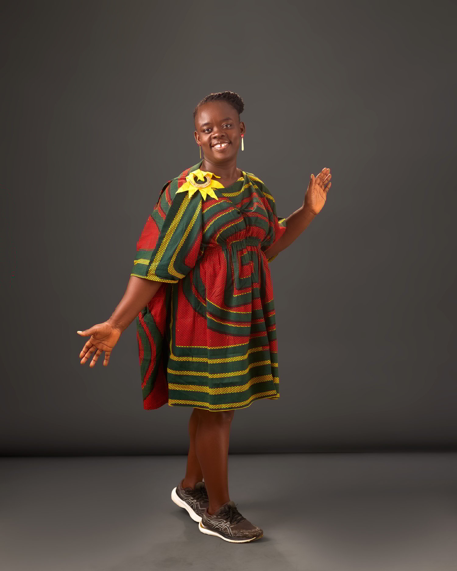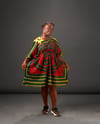The fabric is 100% cotton african print. the special feature of this outfit is with respect to the design on the fabric by the manufacturer.
