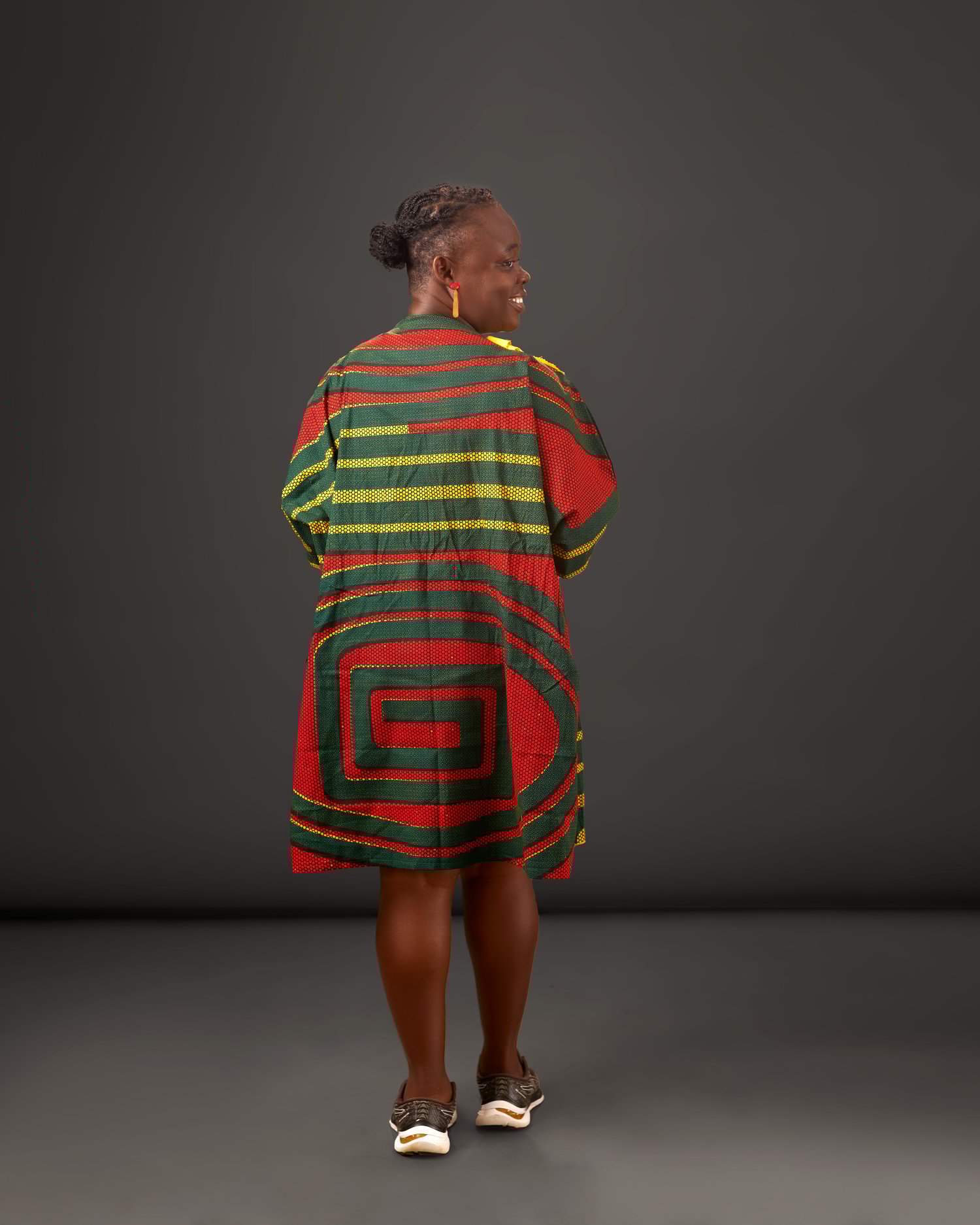 Kimono dress with gathering around the waist. The back view is giving caftan . this outfit is giving luxury.